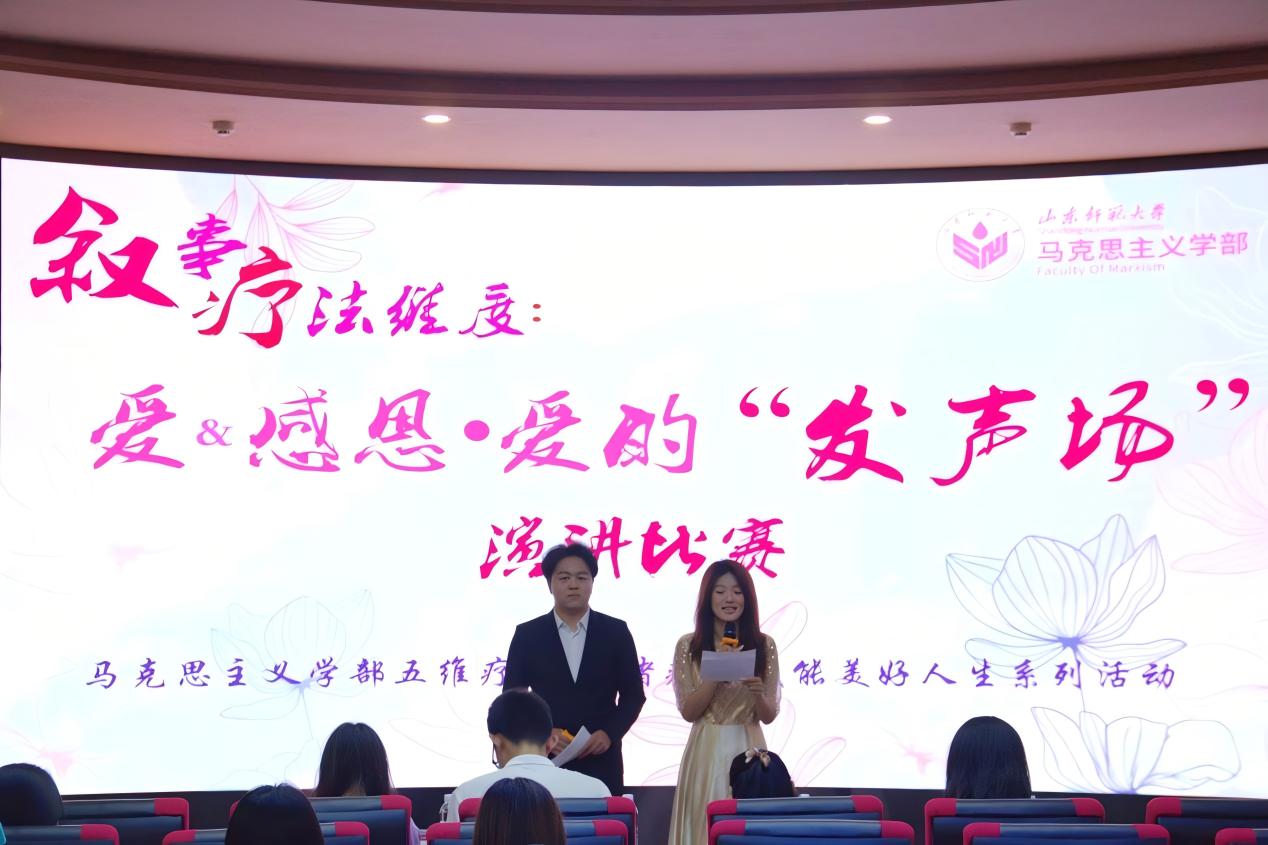 5月23日下午,365英国上市于长清湖校区树蕙堂二楼虚拟仿真思政课体验教学中心举办“爱&感恩·爱的发声场”演讲比赛决赛。学部一百余名学生观看决赛。