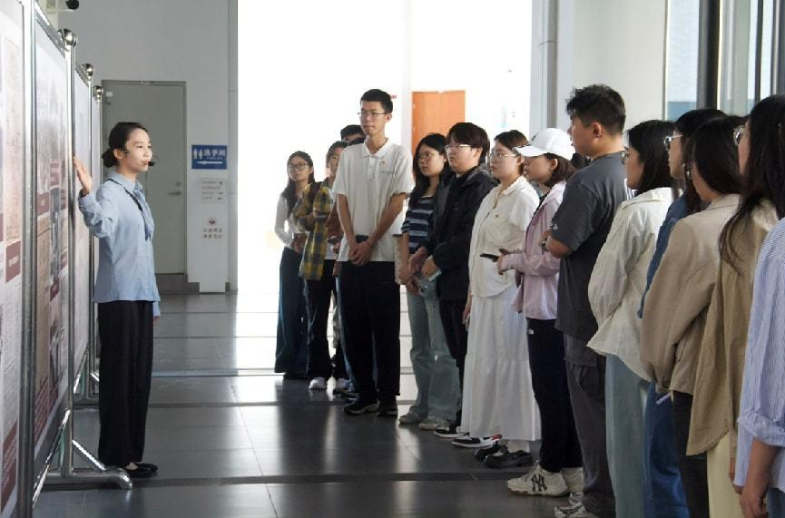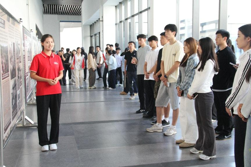 在本次展览中,学部学生宣讲团志愿者担任讲解员为前来观展的学校机关各部门、各学院(部)师生讲解陈列内容。讲解团成员经过短期集中培训,结合图文史料,娓娓道来一段段峥嵘岁月,展现了学部学子良好的精神风貌、扎实的专业知识和深厚的家国情怀。他们立足济南抗战的真实历史现场,对济南抗战的历史细节、精神内核与时代价值进行思考,以“可触摸、可讲述、可共情”的方式丰富了思政课实践教学形式,让学生在与历史的对话中、从本土先烈的抗争精神中汲取力量,切实实现了爱国情怀、民族责任感与政治思想品质的同步提升,营造了浓厚的爱国主义教育氛围。
