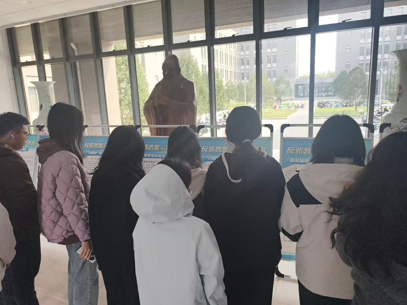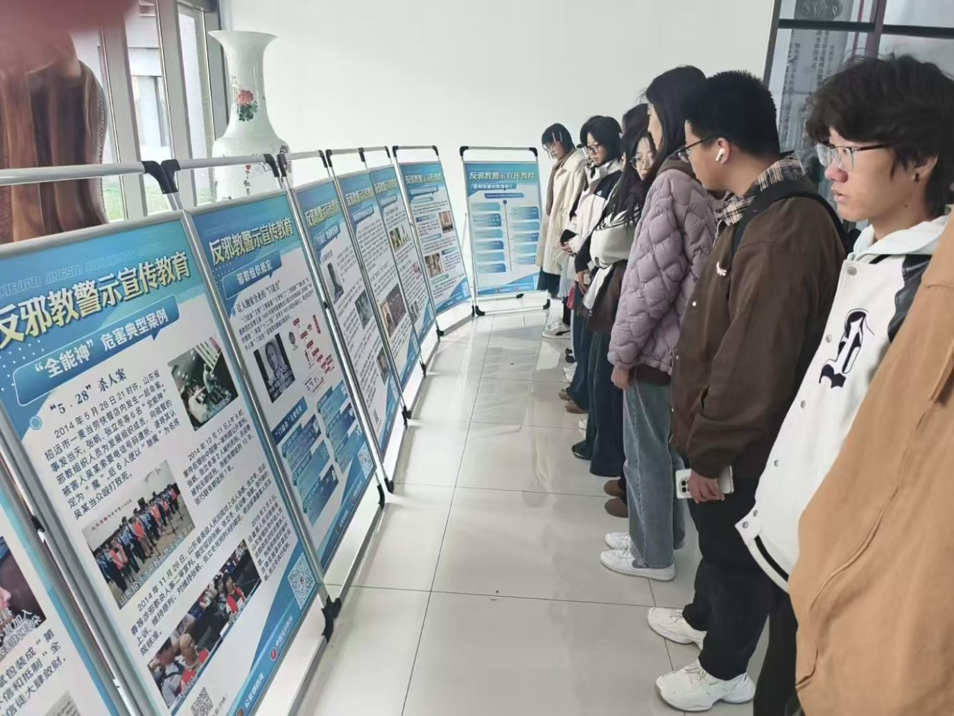 学部学生以年级为单位,有序参观反邪教警示宣传教育主题展览。驻足在不同展板前,学生仔细观看相关内容,充分了解了我国邪教组织的概况与危害,深化了对党和国家反邪教坚定立场与方针政策的认识。参观展览后,学生们纷纷表示印象深刻、受益匪浅,在日后的学习与生活中,会牢固树立正确的价值观,自觉抵制邪教渗透。