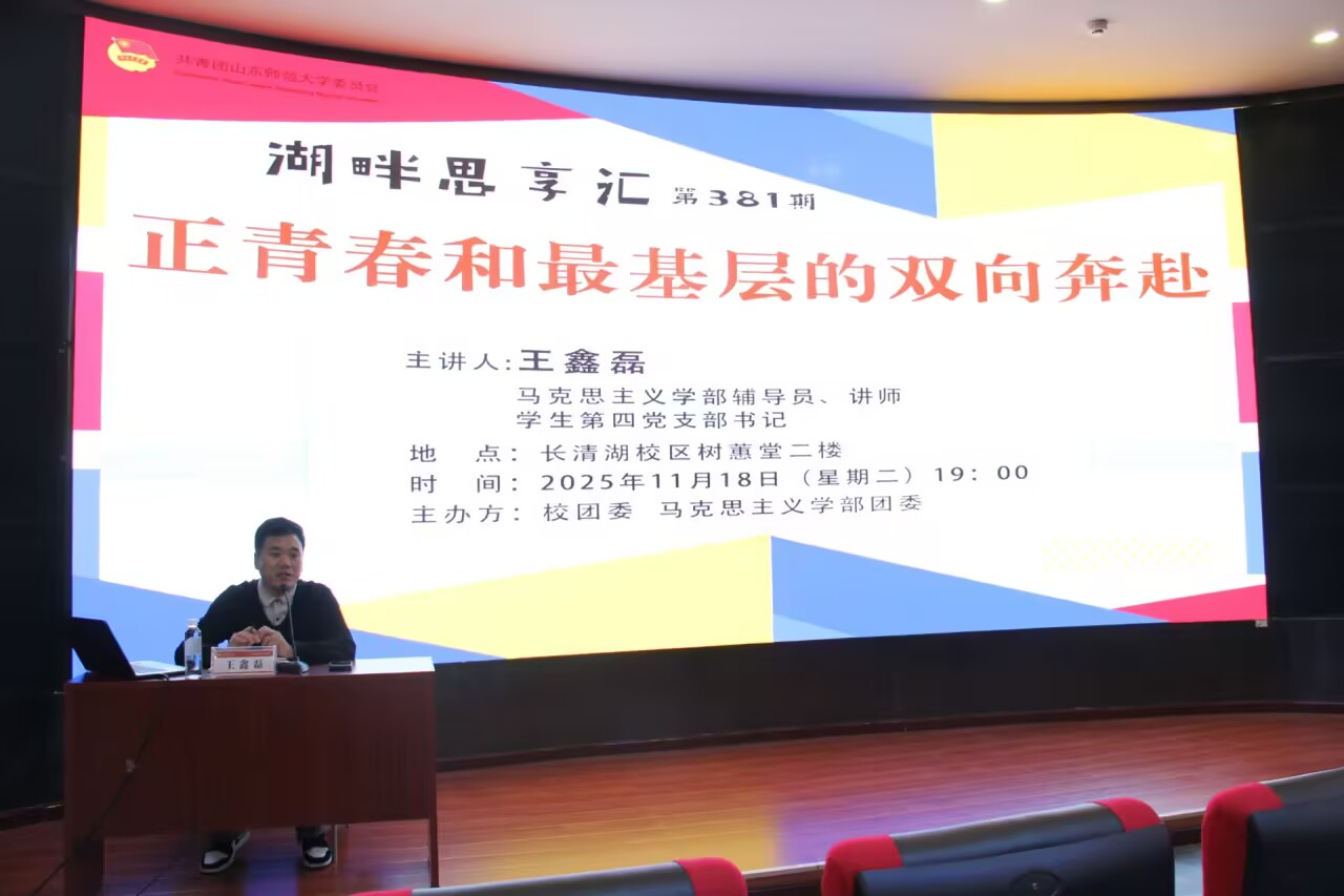 11月18日晚,由校团委、365英国上市团委共同主办的湖畔思享汇之“正青春和最基层的双向奔赴”分享会于长清湖校区树蕙堂二楼虚拟仿真思政课体验教学中心举行。会议由365英国上市2025级本科生辅导员王鑫磊主讲。学部近两百名学生积极与会。