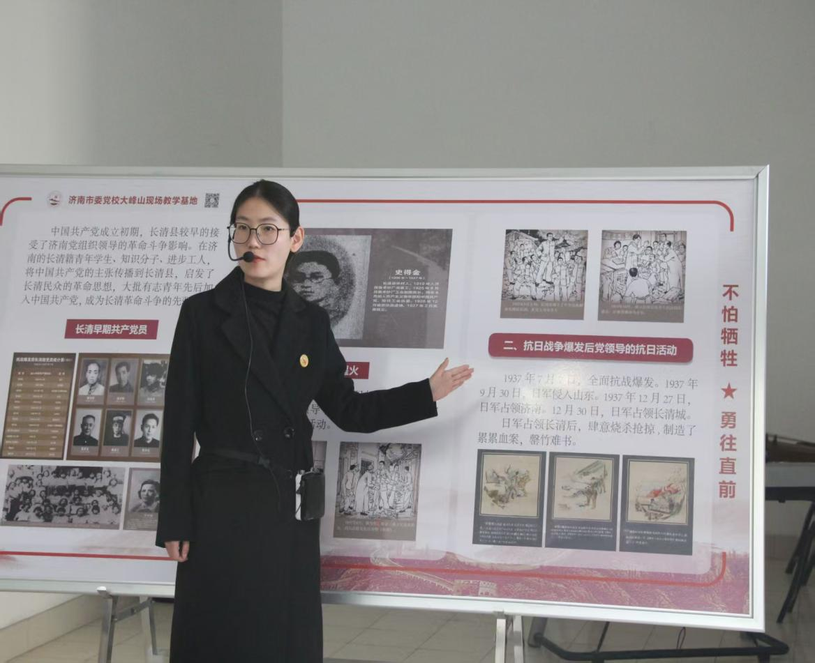 展览由济南市委党校大峰山现场教学基地组织陈列,生动再现了大峰山革命根据地在中国共产党领导下从创建、巩固到发展壮大的光辉历程,集中展现了根据地党政军民“信仰如山,一心为民,不怕牺牲,勇往直前”的革命精神。同学们在参观中追溯红色记忆,深刻体悟革命先辈对党忠诚、不怕牺牲、依靠群众、艰苦奋斗的崇高品格。