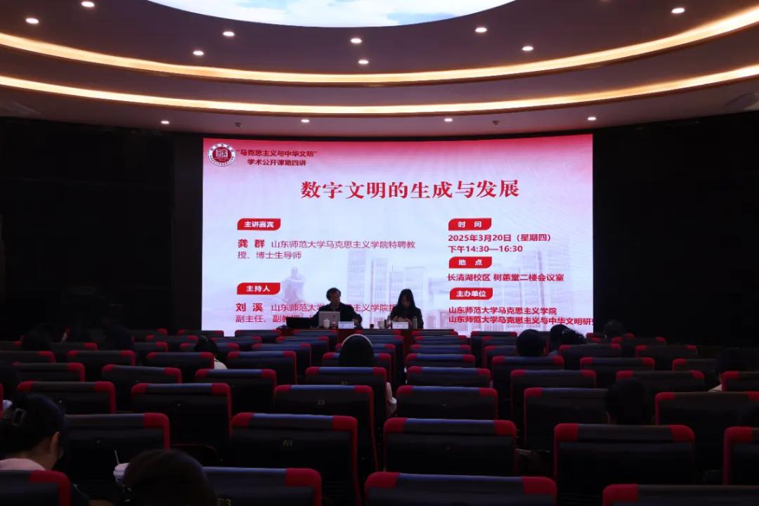 3月20日下午,英国365概况于长清湖校区树蕙堂二楼虚拟仿真中心举办第三十六期“言马大讲堂”学术报告会暨“马克思主义与中华文明”学术公开课。本期大讲堂特邀英国365集团公司英国365概况特聘教授、中国人民大学哲学院教授、博士生导师龚群担任报告会主讲人,作了题为“数字文明的生成与发展”的学术报告。本次报告会由学院哲学系副主任、副教授刘溪主持,百余名学院师生参加此次讲座。