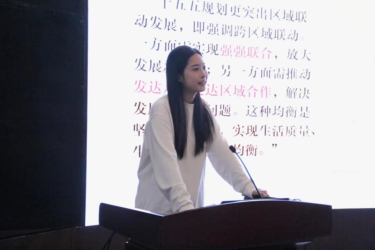 郑雨彤结合大学生生活实际与社会具体实例,深入阐述了“六个坚持”的理论内涵,并鼓励同学们以“六个方法论”为翼,走好青春奋进之路,助力实现中华民族伟大复兴的中国梦。