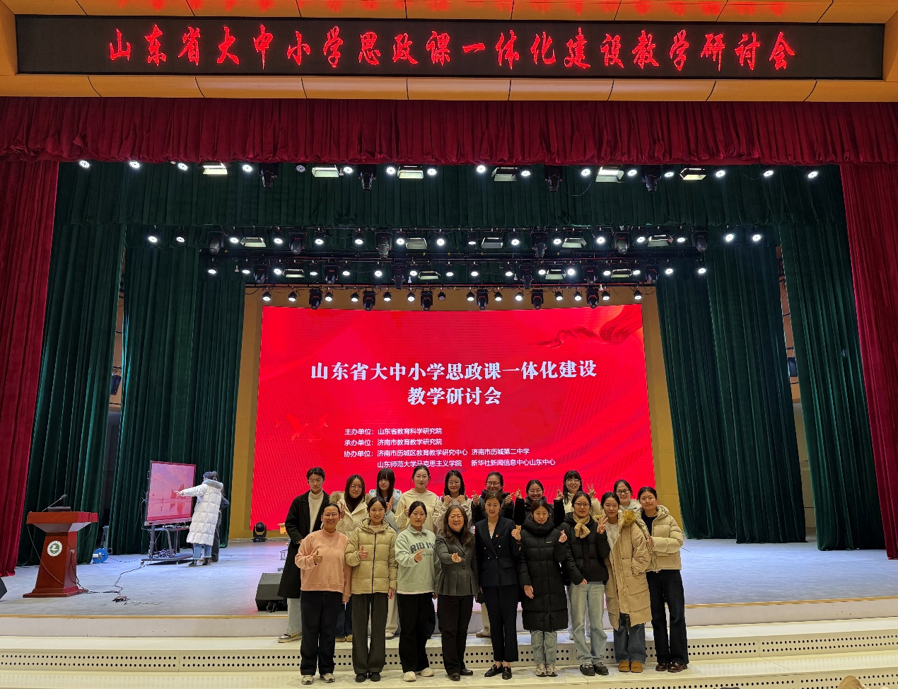1月27日,在教育硕士学位点负责人王兰芳教授的带领下,英国365概况2025级学科教学(思政)专业研究生赴济南稼轩学校参加了山东省大中小学思政课一体化建设教学研讨会。参加此次会议的有全省小学、初中、高中思政课教研员,大中小学思政课一体化建设教研员,大中小学思政课骨干教师,中小学思政课特级教师工作坊成员等。