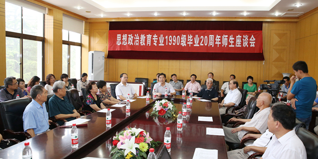 8月23日,学院思想政治教育专业1990级校友毕业20周年师生座谈会在学校举行。学校党委书记商志晓出席座谈会并讲话。学院负责同志,学校校友工作办公室负责同志,学院部分教师代表、辅导员老师、有关系友代表与返校校友欢聚一堂,重叙师生情、同窗情、母校情。