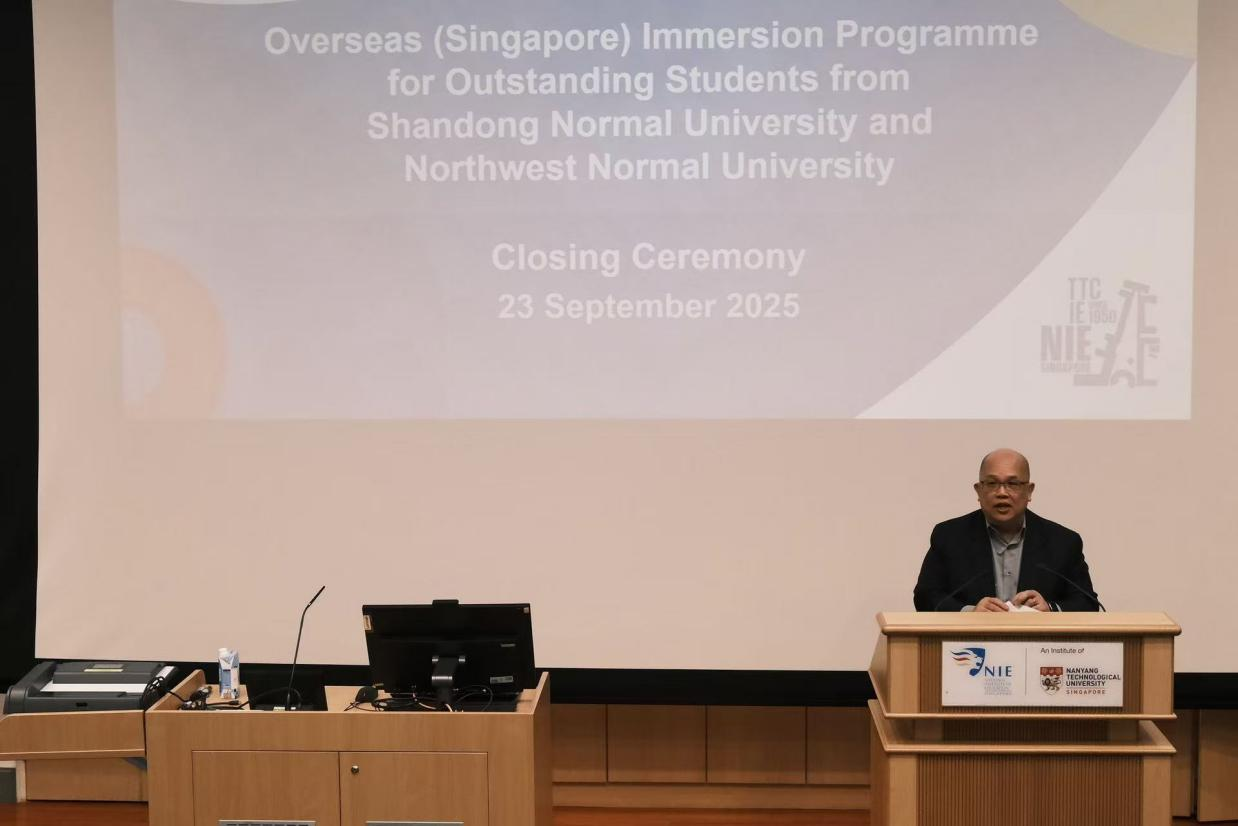 金秋十月,研学项目圆满结束,结业仪式在南洋理工大学国立教育学院如期举行。国立教育学院国际业务副院长谢志勇,以及参与访学项目的17名研究生、本科生共同参加结业仪式。仪式由国立教育学院国际部谭庆龄老师主持。