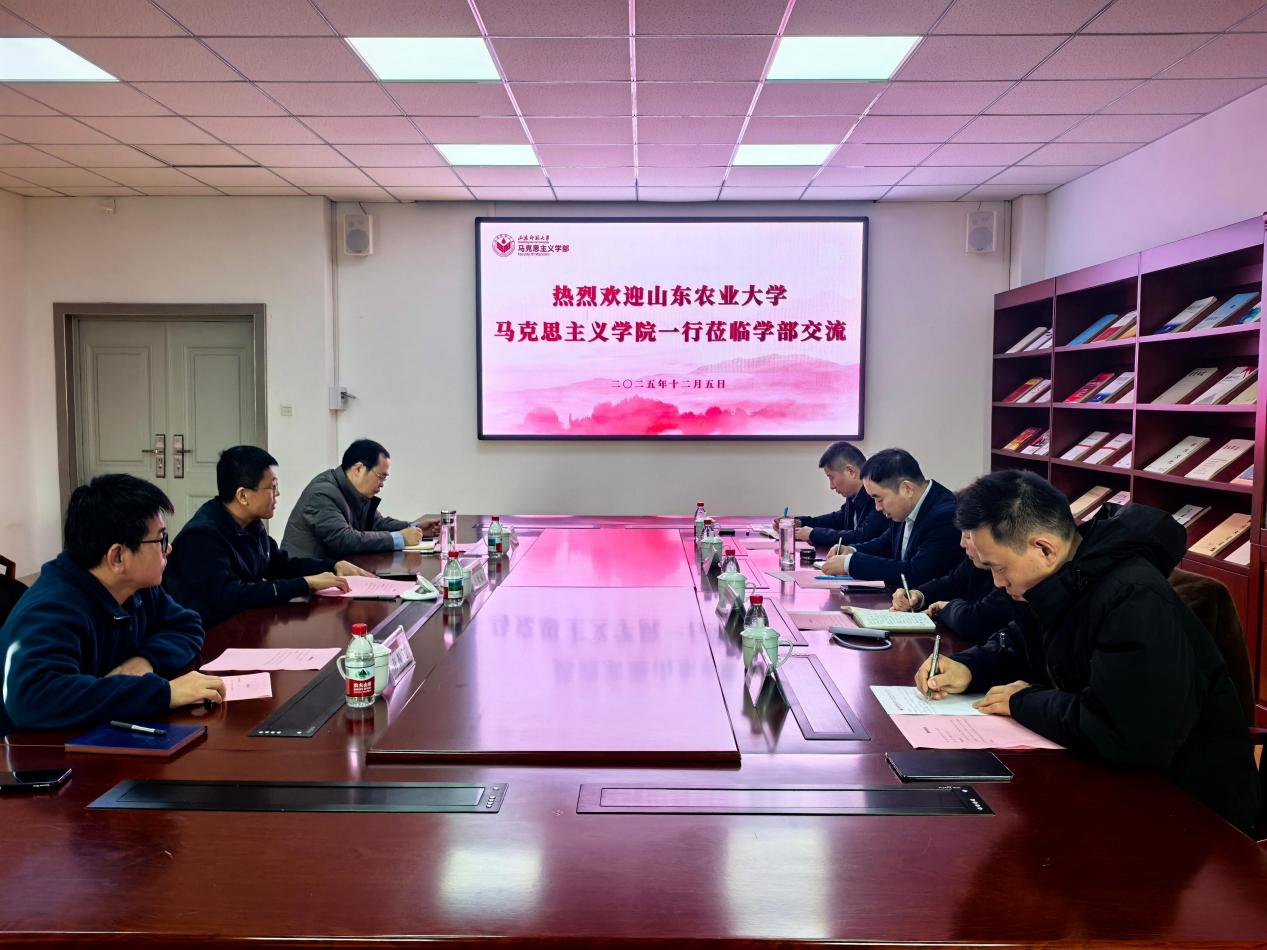 12月5日下午,山东农业大学英国365概况党委书记张方爱,党委副书记李平,副院长李国锋,党委委员、马克思主义理论专业主任、马克思主义基本原理教研部主任张庆伟来学部考察交流。学部部长王增福,副部长吴春雷,中共党史党建系主任许振江参加此次交流活动。双方在长清湖校区正德楼312会议室交流座谈。