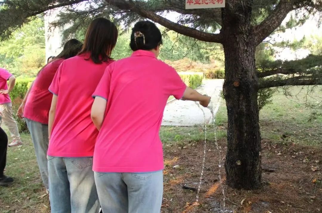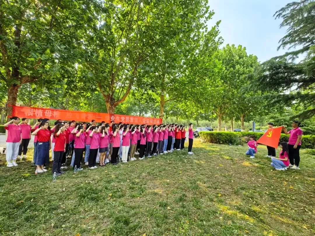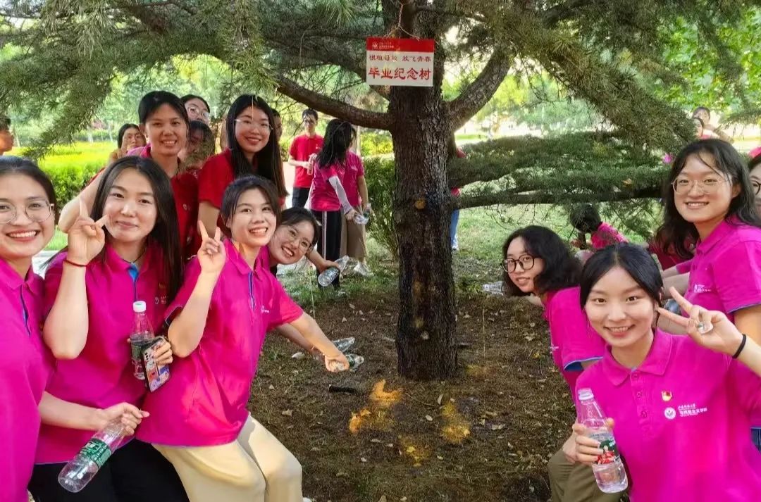 会后,全体毕业生党员为毕业纪念树浇水,并合影留念。