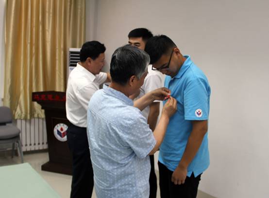 座谈会上,李鹏健和李爱华共同为毕业生党员代表佩戴党徽。毕业生党员刘祥杰表示:这是一份沉重的嘱托,党员的责任和使命将永远牢记心头!