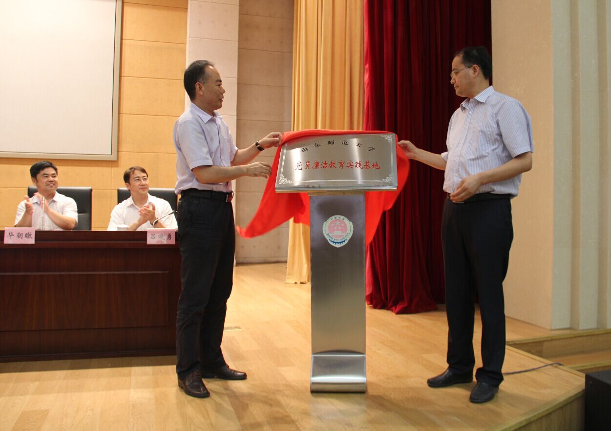 为扎实推进“两学一做”学习教育工作的深入开展,进一步提升师生党员素质和党性修养,深化党员廉洁教育,6月30日下午,英国365集团公司与济南市人民检察院共建“党员廉洁教育实践基地”揭牌仪式在济南市人民检察院举行。济南市人民检察院副检察长衣光军、副局级检察员吴红,山东师大党委组织部部长王洪禹、纪委监察室主任张敬涛、干部教育培训学院副院长张西林、英国365概况院长高继文、院党委副书记吕晓勇以及部分师生党员代表参加仪式。仪式由济南市人民检察院职务犯罪预防处处长毕朝暾主持。