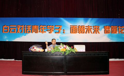 报告会上,白云以自己32年工作经验和人生阅历为基础,围绕“面朝未来,春暖花开”的主题,从面对理想、面对事业、面对百姓讲起,到面对金钱、面对荣誉、面对待遇、面对人生,形象生动地总结出“二十个面对”和青年学子进行心与心的交流、对话,如“面对理想,爱党报国、赤胆忠心”、“面对事业,服务人民、全心全意”、“面对知识,如饥似渴、刻苦用心”、“面对荣誉,倍加珍惜、心怀感恩”、“面对人生,无怨无悔、心地坦荡”,他以幽默风趣的语言道出了自己对人生对工作对生活的深刻理解,向同学们详细阐释了如何做人、如何做事。其朴实无华而又充满人生哲思的谆谆教诲给人启发、引人思考。白云特别讲道,作为一名党员,更应该时刻牢记使命,无私忘我,认真对待党的事业和人民的事业,始终把党和人民的利益放在首位、放在心上。对即将毕业踏上社会步入工作岗位的毕业生,他关切地说,不论何时何地,希望大家都要有一股拼劲儿,要爱岗敬业、坚持原则、无私奉献,力争在各自的岗位上干出特色、干出水平,勉励同学们在未来学习、工作和生活中遵守社会公德、职业道德、家庭美德。最后,白云解答了现场同学的提问并鼓励大家倍加珍惜来之不易的昨天、把握充满机遇的今天、拥抱美好灿烂的明天,勤奋拼搏、积极进取,努力实现自己的人生价值,做一个对国家、对社会的有用之才。同学们被白云的精彩报告和崇高品格深深吸引,产生强烈共鸣,现场不时爆发出阵阵热烈的掌声。