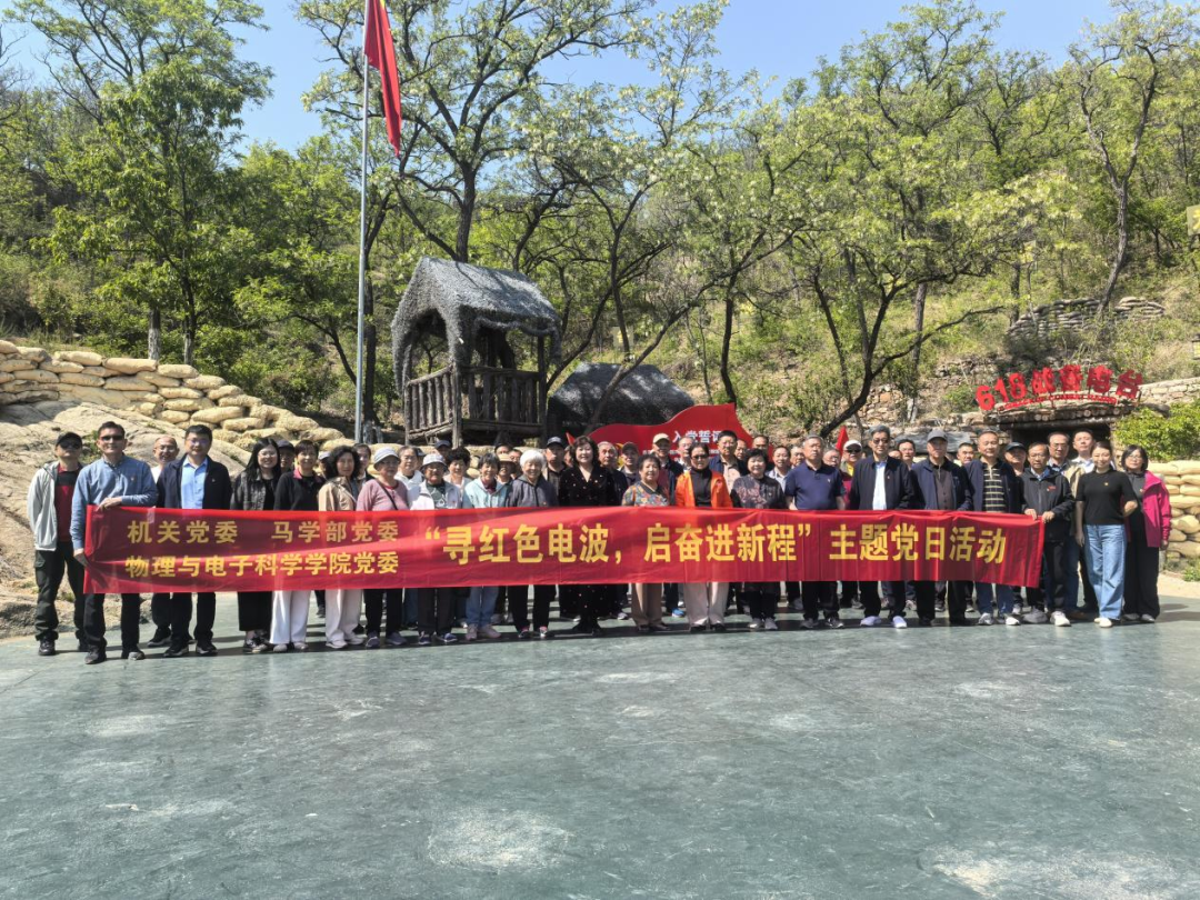 为推动深入贯彻中央八项规定精神学习教育走深走实,进一步强化退休党员党性修养,4月25日,机关、马学部、物电学院党委联合组织退休党员赴淄博沂源618电台红色教育基地开展“寻红色电波,启奋进新程”主题党日活动。机关党委书记张慧,副书记、纪委书记金鹏,副书记黄春霞,马学部党委副书记潘磊,物电学院党委副书记杜伟参加活动。