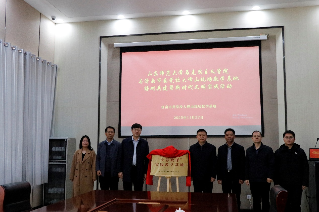 学院与大峰山现场教学基地结对共建,一方面,将思政课由学校小课堂向社会大课堂延伸,在红色文化传承实践中推进思政课改革创新,充分发挥大思政课实践教学基地的作用,推动学院大思政课建设走深走实;另一方面,大峰山基地优质宣传资源,将助力学院围绕理论宣讲、文明创建、革命文化宣传等重点领域,深入开展形式多样、内容丰富的文明实践活动,为学院与长清区新时代文明实践中心结对共建工作注入新动能。