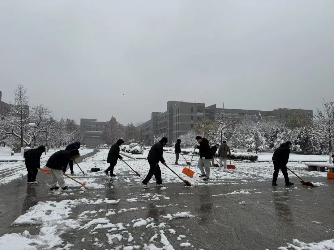 意义,在行动中彰显。在学院师生的努力下,清雪除冰工作有序进行、高效完成,人流量密集的主干道已及时清雪除障,保证行人及车辆安全通行。中午时分,四级考试结束的同学们陆续走出考场,沿着刚刚清理出的干净道路走向宿舍。有党员同学感慨:“看到大家安全、顺畅地走在我们清出来的路上,觉得特别有意义。”而这,也正是大家共同的信念——不仅要为上午的考试护航,更要为下午参加六级考试的同学们铺就一条“平安考路”。