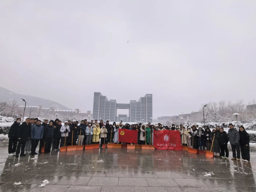 在这个庄严与冰雪交织的日子,我们以肃静铭记历史,以行动温暖当下。一次除雪,是一次生动的主题党日,也是一堂深刻的实践党课。清的是雪,筑的是路,暖的是心,凝聚的是马院人团结向前、甘于奉献的精神风貌。风雪见证初心,行动书写忠诚,致敬每一位在雪中奉献的马院人,也祝愿所有考生,笔下生花,不负努力!